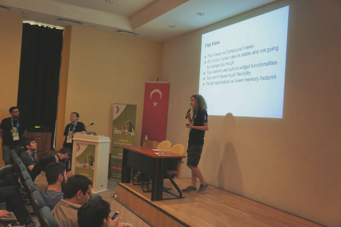 Özelleştirilmiş bir View oluşturmak, Android ile uygulama geliştirirken palette verilenin dışında widget'lara ve işlevlere gerek duyan her geliştiricinin mutlaka uygulayacağı bir yöntem. Doğru kodlama yaparak ve doğru kararları vererek esnekliği ve verimliliği bir araya getirebilirsiniz. Bu önemli konuya geçen seneki Android Geliştirici Günleri'nde de bir oturum ayrılmıştı ve Said Tahsin'in oturumunda bu konunun dile getirilmesi çok iyi oldu.
