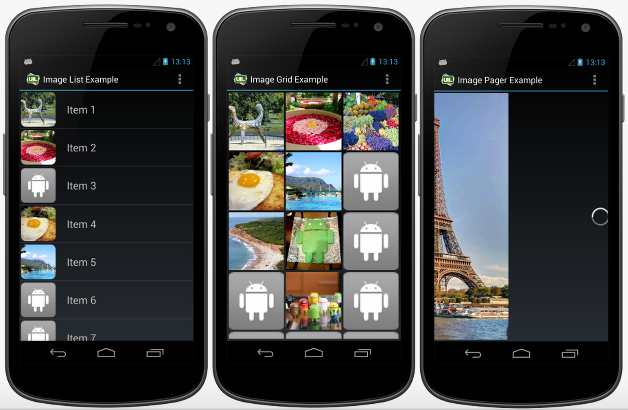 Uygulama içerisinde birden fazla görüntü aynı anda farklı kaynaklardan çekilmek istenebilir. Bu hem bizim için hem de uygulamamız için biraz zahmetli olabilir. Picasso güzel bir kütüphane olmasına rağmen görüntüyü önbellekte saklama ve box loading denilen toplu yükleme işlemlerini gerçekleştirememektedir. Burada yine yardımımıza başka bir kütüphane yani UIL yetişmektedir. UIL sadece İnternet üzerinden değil, SD Card gibi farklı konumlardan da veri yükleyebilir.